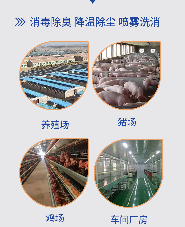 ?微小顆粒:通過高壓力將水或消毒液霧化成微小顆粒,通常在10微米到50微米的范圍內;? 均勻分布:能夠產生均勻細密的霧化效果,使微小顆粒均勻分布在空氣中或目標表面上。這種均勻分布可以確保消毒液充分接觸到目標區(qū)域的每一個角落,提高消毒效果;? 高效節(jié)水:高壓微霧產品能夠將液體轉化為更多的微小顆粒,從而實